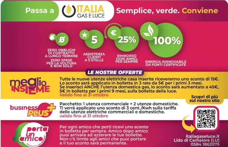 Inoltre restando 12 mesi con IGL, 25% di sconto in bolletta sulla quota energia (calcolato sulla media consumata durante l'anno) nella fattura successiva!